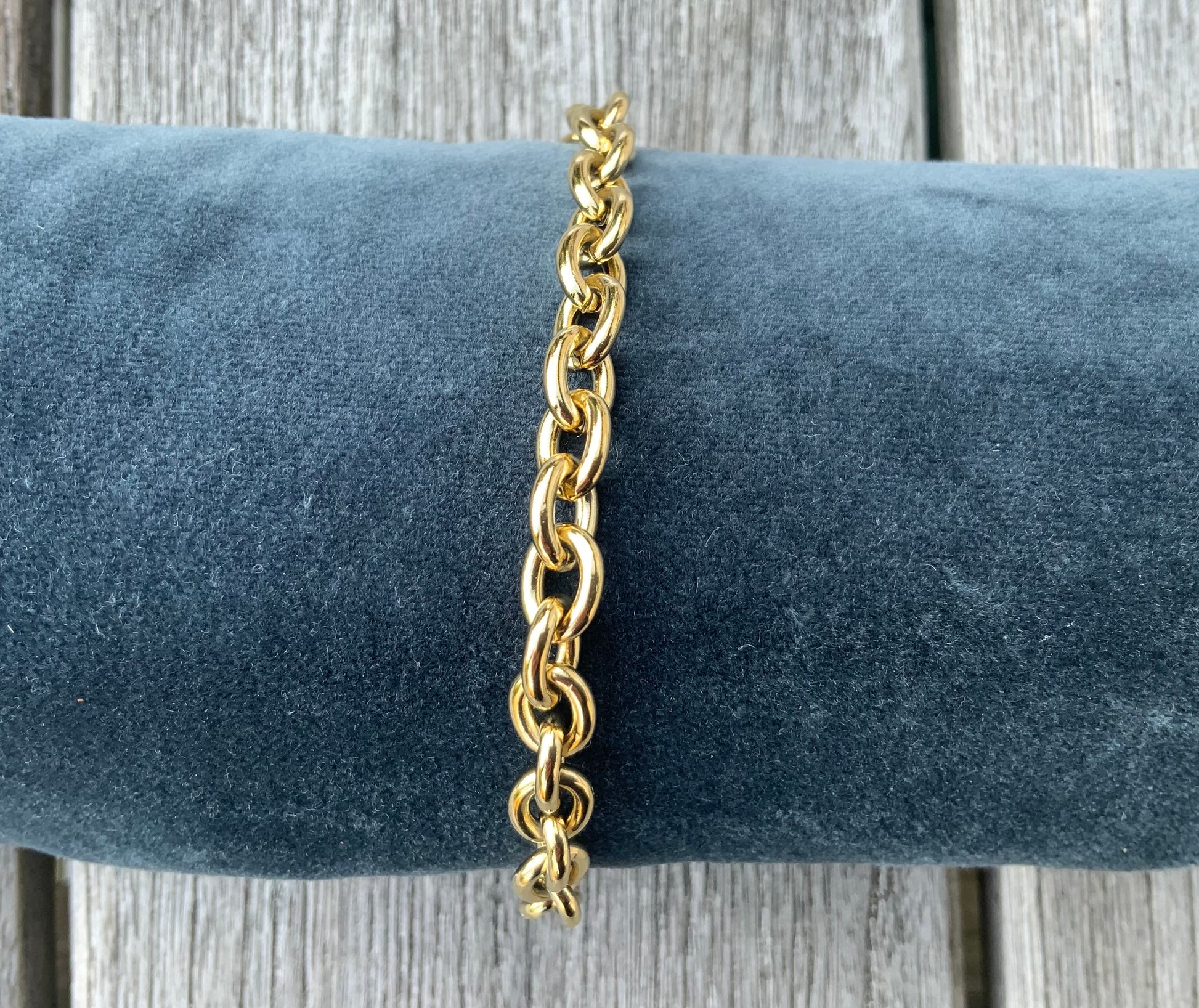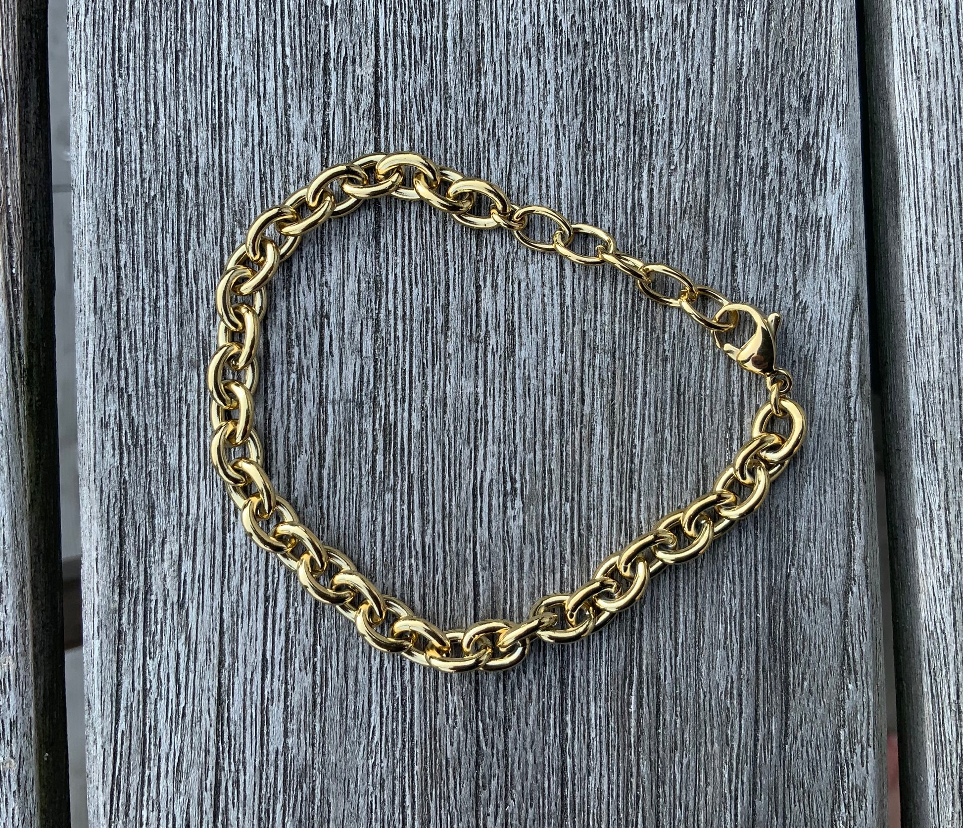 Den klassiske kæde er altid et hit. Det er så kraftigt, at det let kan bæres alene, men det kan også sagtens bæres sammen med andre armbånd, f.eks. armbånd i halvædelsten som karneol, aventurin, sodalit, eller andre af de smukke armbånd, som du kan finde her på siden.